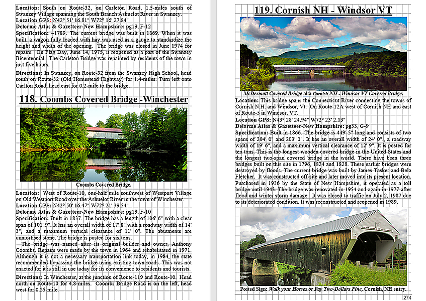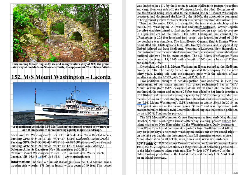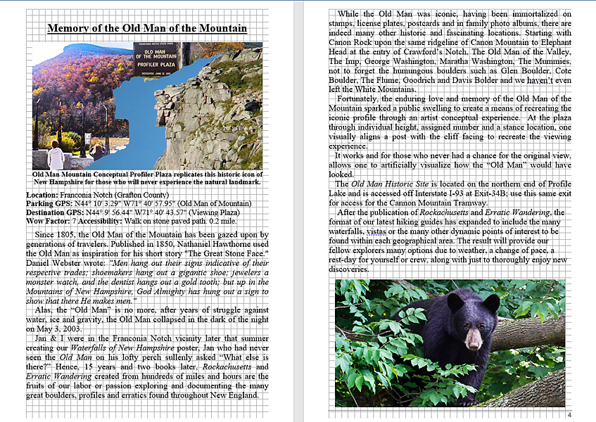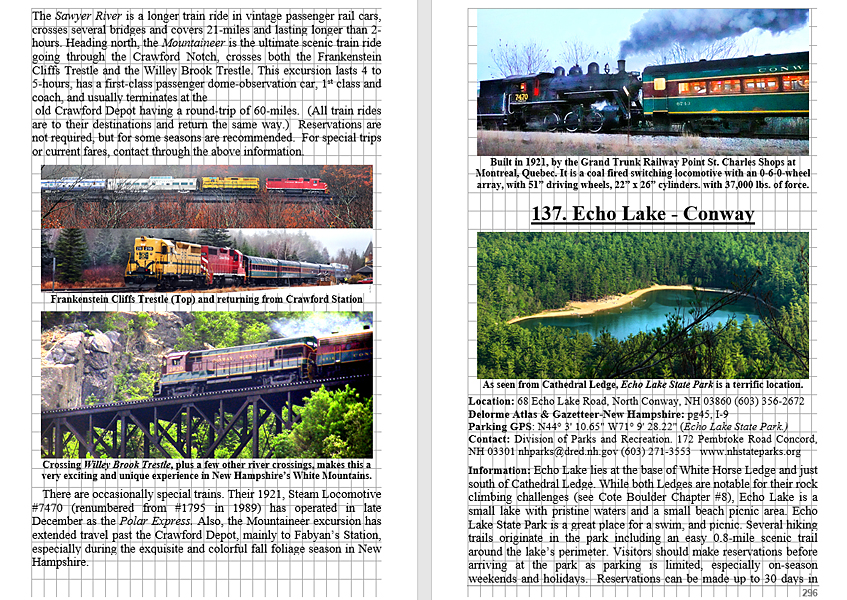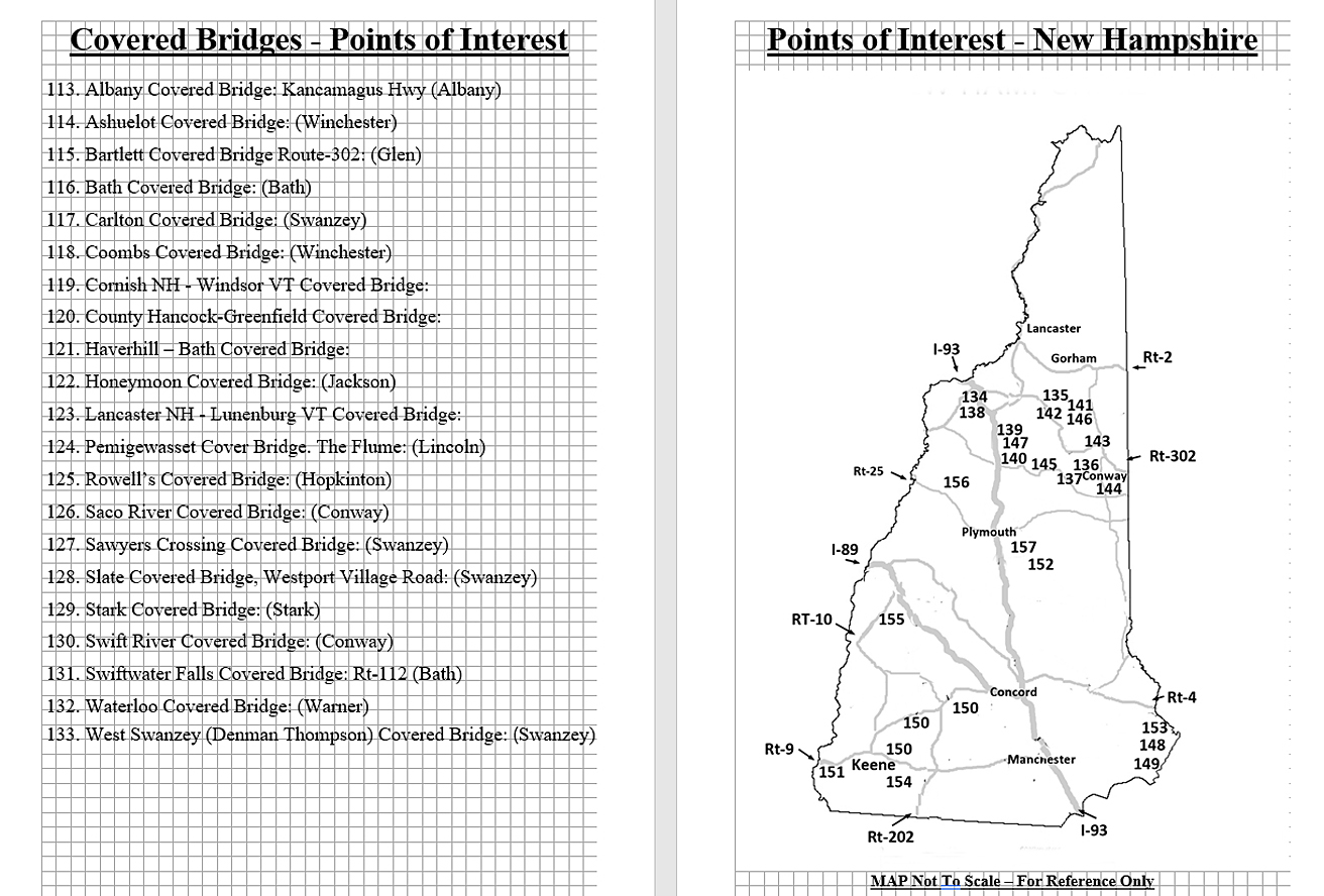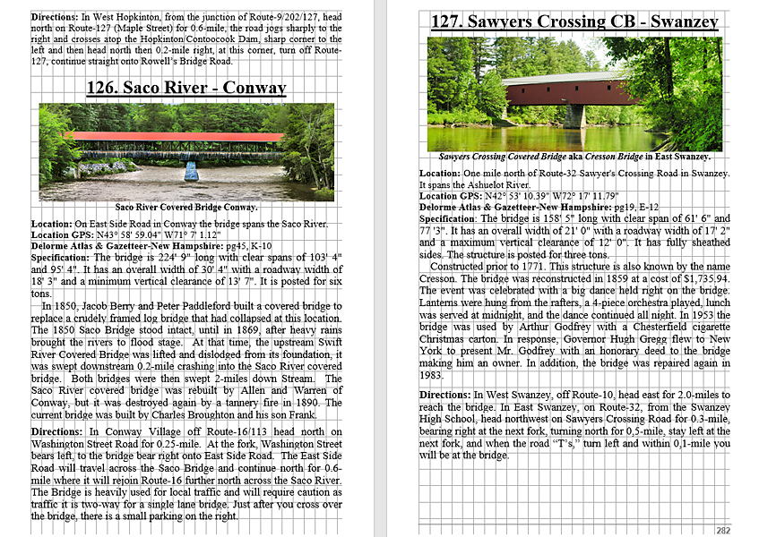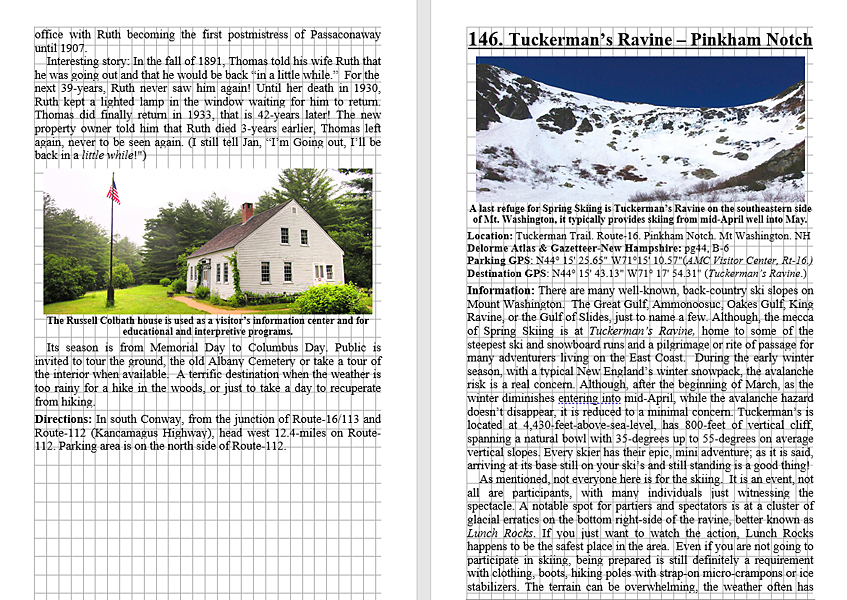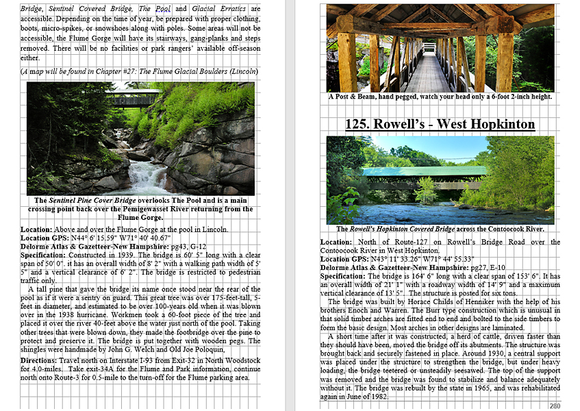 Look Inside The Book (Samples of various pages -click to enlarge) Table of Contents for New Hampshire Destinations Waterfalls - Boulders - Hikes - Points of Interest - Statues Total of 338 pages, 157+ Chapters, arranged alphabetically within each section. |