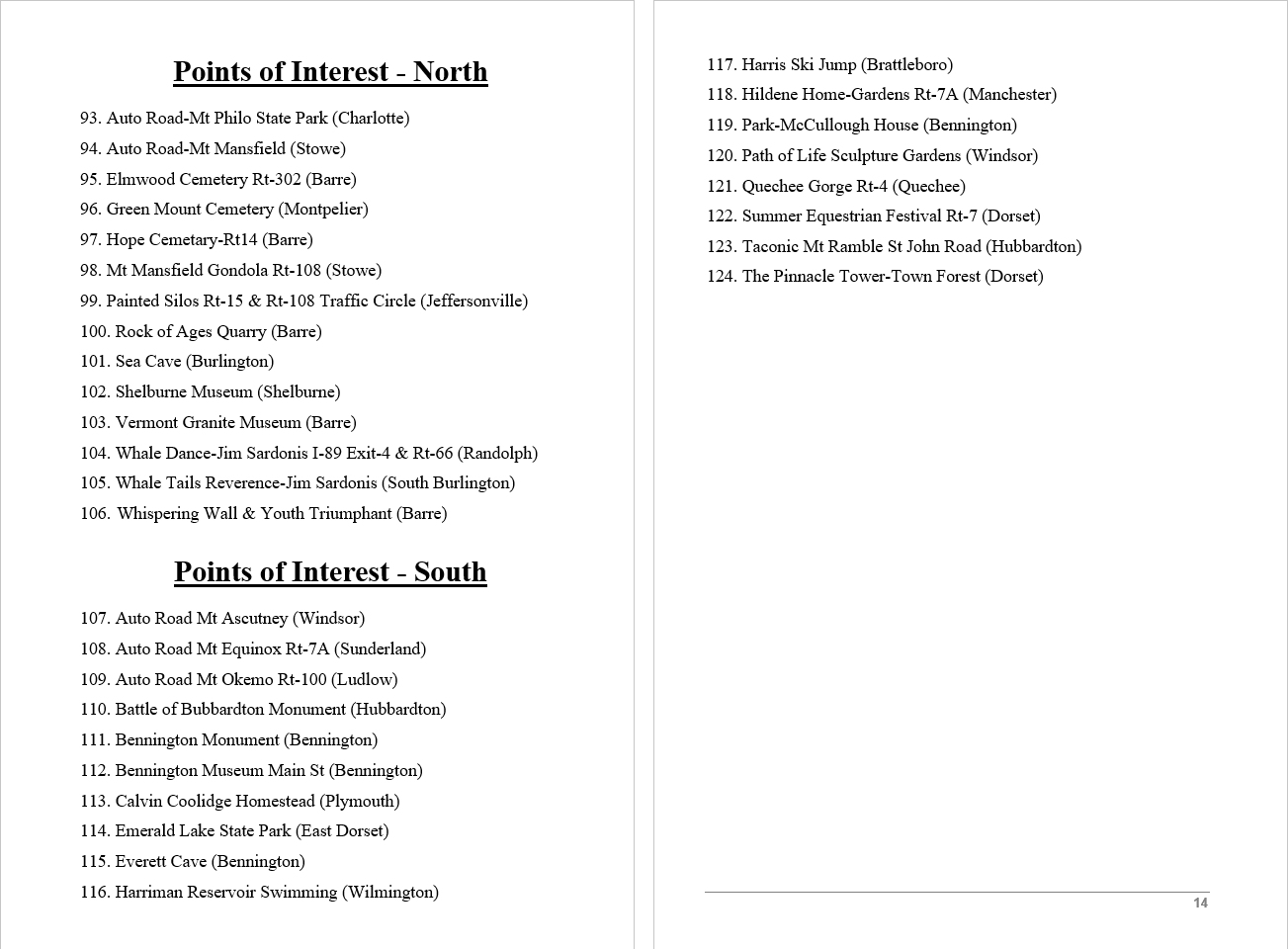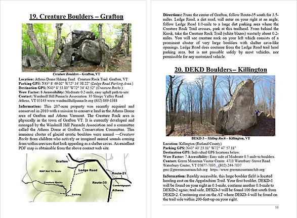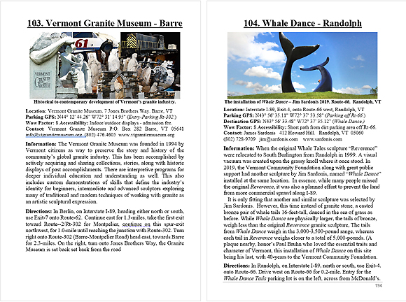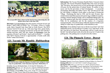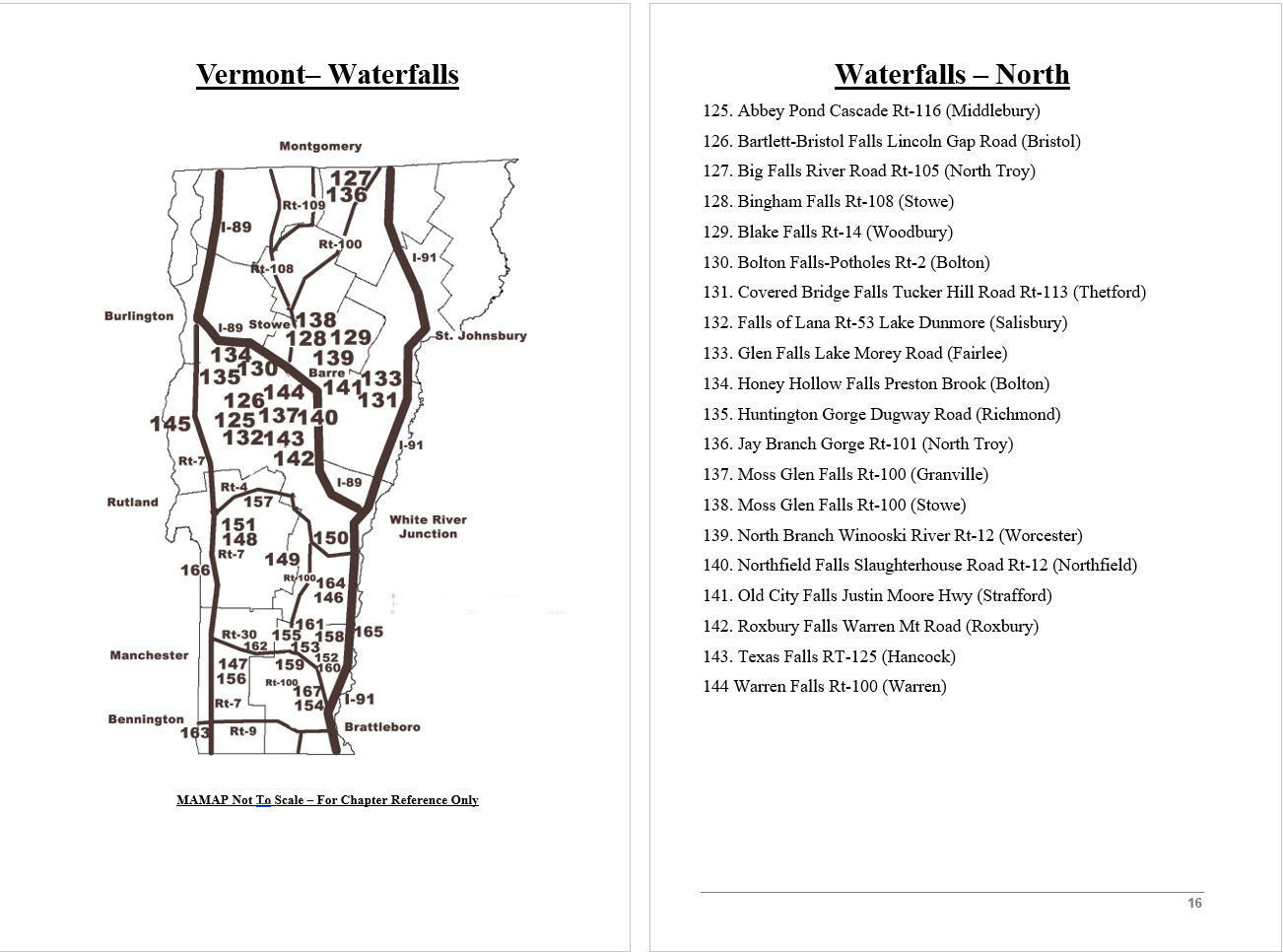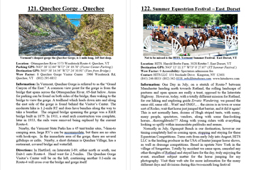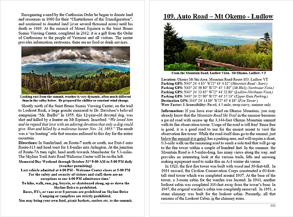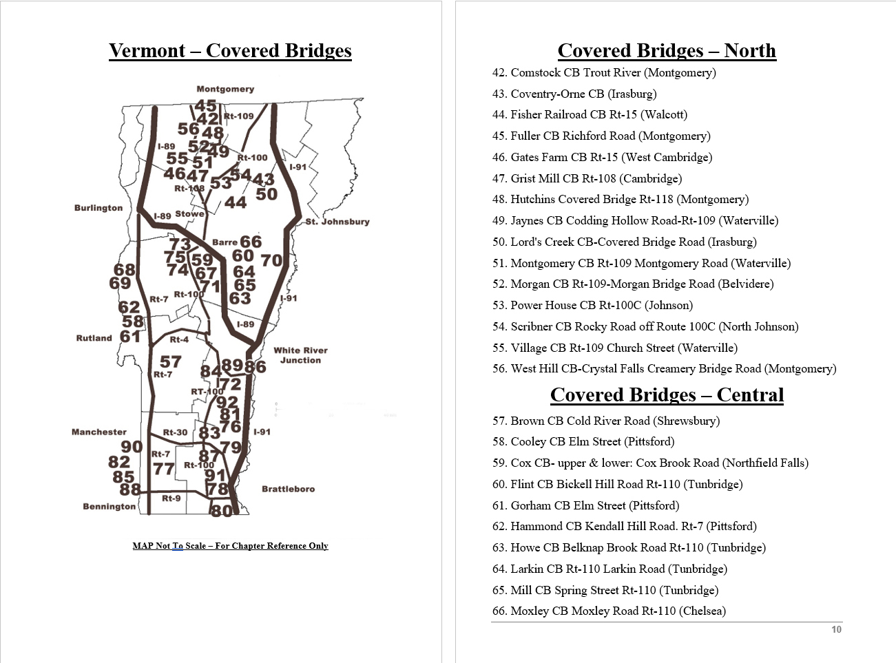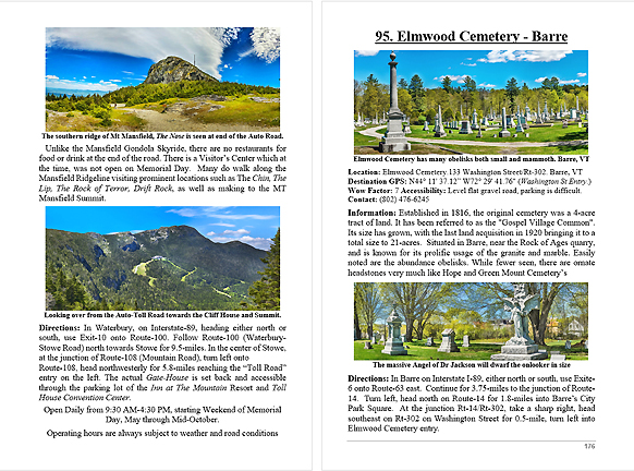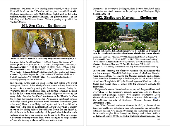 Look Inside The Book ( Random Samples of Various Pages) Covered Bridges -Waterfalls - Boulders - Points of Interest Total of 304 pages, 170 Chapters, arranged alphabetically within each section. |